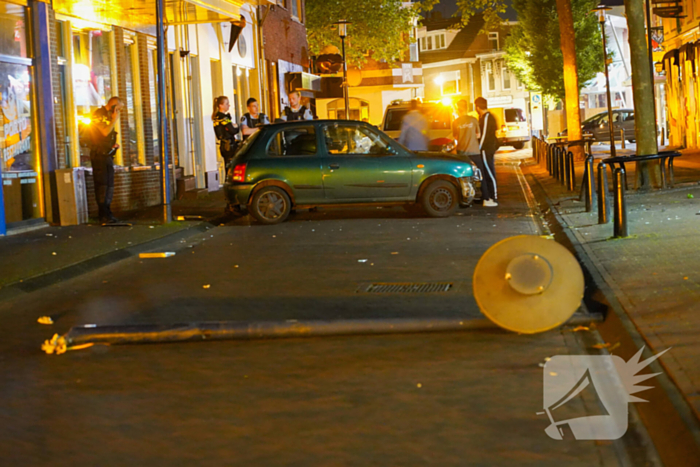 De automobilist raakte daardoor een nog onbekende reden van de weg en reed een lantaarnpaal omver. Doordat de lantaarnpaal uit de grond is gereden, zijn de overige palen zonder stroom komen te zitten. Ook heeft de bestuurder nog een ander paaltje omvergereden.