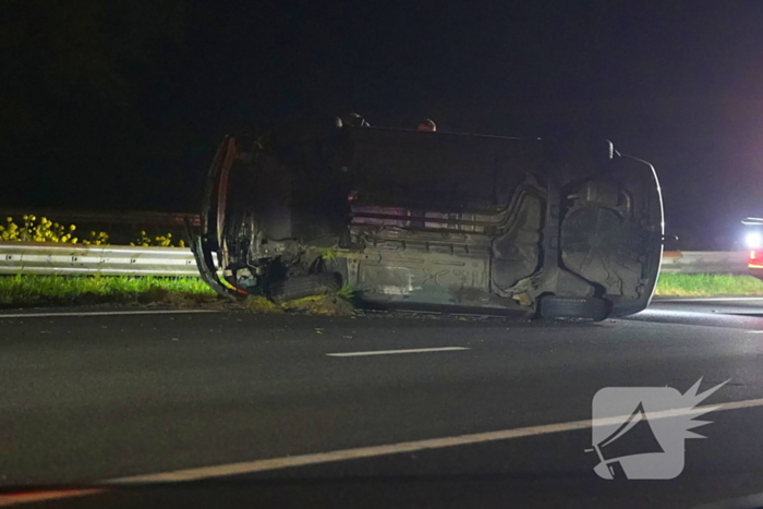 Een auto was tegen de vangrail gebotst en op zijn kant beland. Dit gebeurde tussen Assen en Beilen. De auto ligt op de meest linkerrijstrook. De bestuurder van het voertuig is ter plekke in de ambulance behandeld, maar hoeft niet mee naar het ziekenhuis. Tijdelijk waren er twee rijbanen afgesloten voor het verkeer.