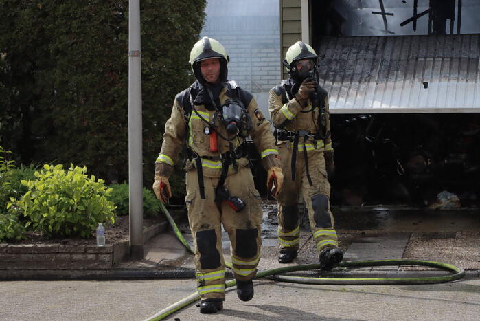 Bij aankomst van de hulpdiensten bleek dat er in een schuur/garagebox brand te zijn uitgebroken. De vlammen sloegen al metershoog uit de berging. De brandweerlieden hadden de vlammen al vrij snel onder controle.