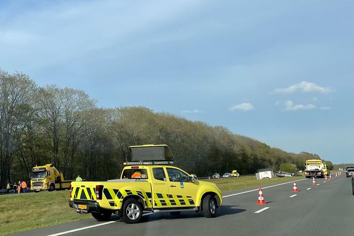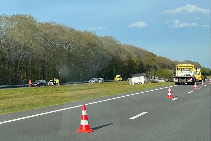 Ter hoogte van hectometerpaal 6,3 heeft een botsing tussen twee voertuigen plaatsgevonden. Door de botsing belandde een personenauto die een paardentrailer vervoerde ondersteboven. Een persoon raakte gewond, hij is behandeld door het ambulancepersoneel en overgebracht naar het ziekenhuis.