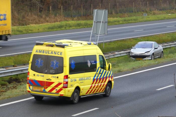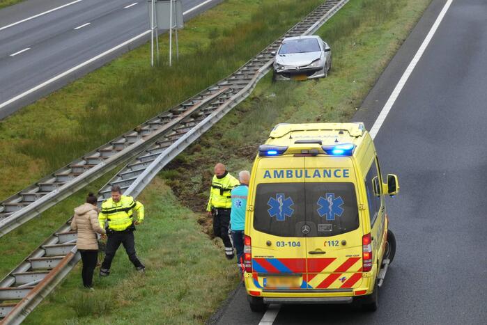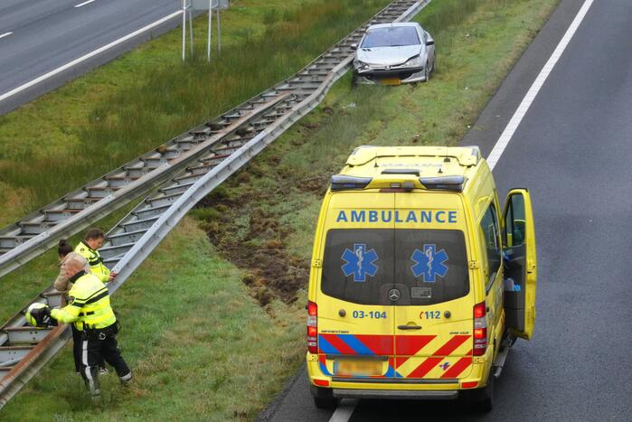 De bestuurster van de een auto is door onbekende oorzaak de macht over het stuur verloren en tegen de vangrail tot stilstand gekomen. De schade aan de auto is flink en deze is door een berger afgesleept. Niemand raakte gewond bij het ongeval.