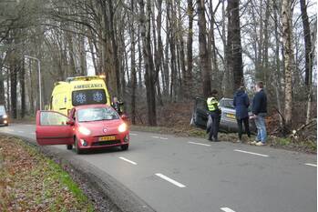 Auto botst tegen boom en belandt in greppel, 62-jarige bestuurder overleden