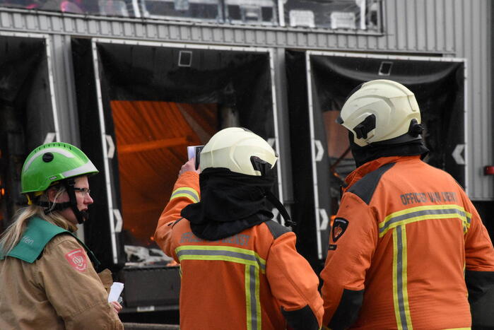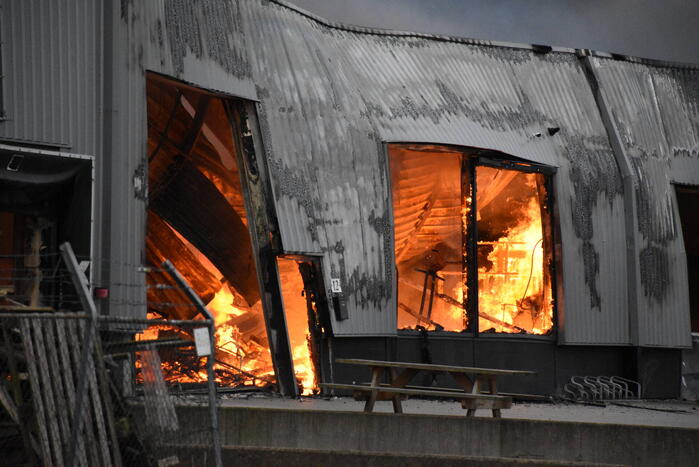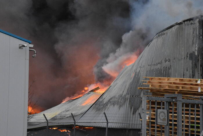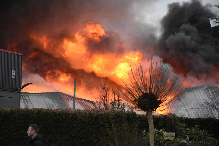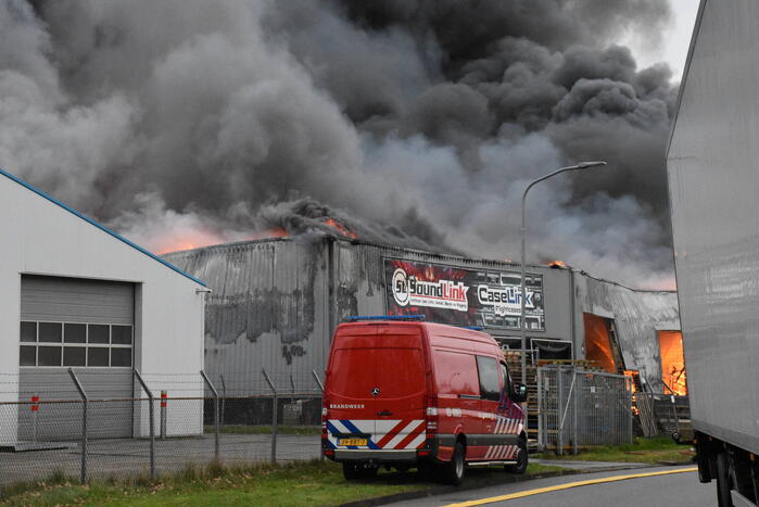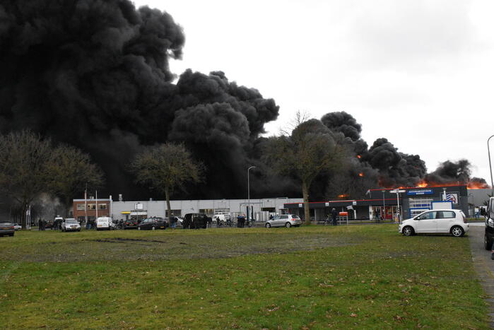 Bij de brand komen dikke zwarte rookwolken vrij. De brandweer is met groot materieel aanwezig om de brand in het bedrijfspand te blussen. De omgeving is groot afgezet om zo de hulpdiensten de ruimte te geven.