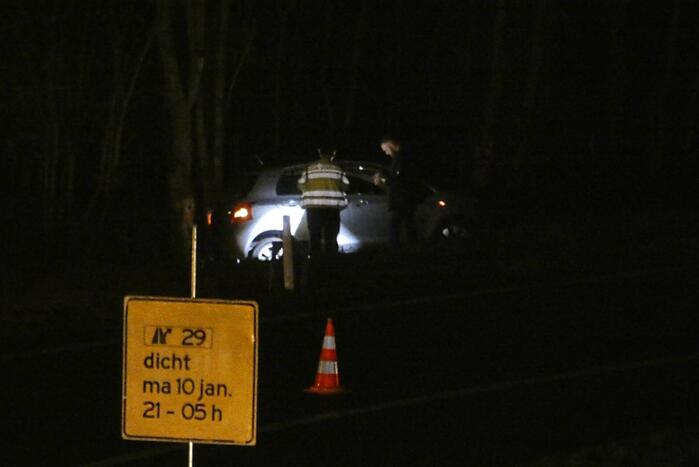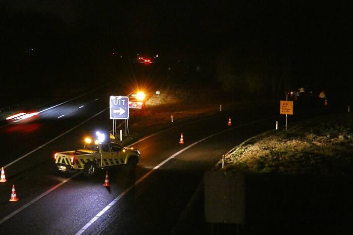 Een auto schoot bij de afrit rechtdoor de weg af. Een ambulance kwam ter plaatse om inzittenden na te kijken. Uiteindelijk kwam iedereen met de schrik vrij.