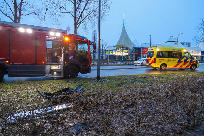 Een bergingsbedrijf heeft de auto en de brokstukken geborgen.