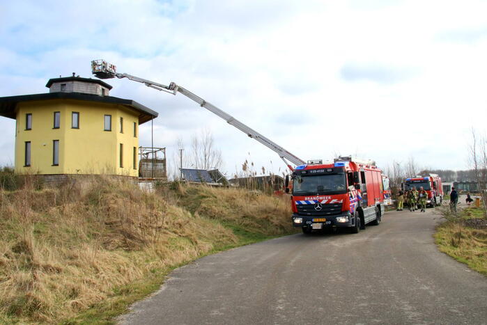 Op het dak van een vrijstaande woning was door onbekende oorzaak brand ontstaan. Door snel ingrijpen van de brandweer bleef de brand beperkt. Het dak van de woning liep lichte schade op.