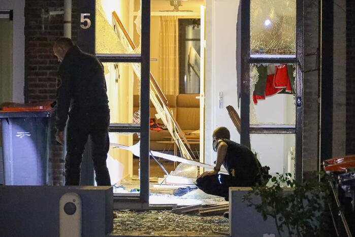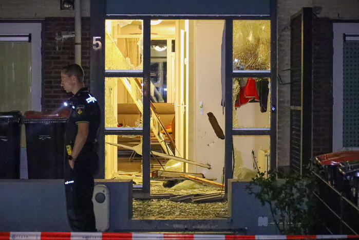 Niemand raakte gewond toen er iets bij de voordeur explodeerde. De harde knal was te horen in de buurt. Er is veel schade aan de woning en er ligt veel glas op de oprit van de woning. Het onderzoek door de forensische opsporing aanwezig en doen onderzoek.