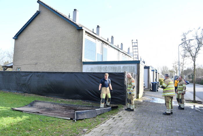 De bewoonster van de woning stond op het moment dat de dak van de schuur waaide haar auto te stofzuigen. De brandweer heeft het dak van de schuur losgemaakt en naar beneden gehaald. Niemand raakte gewond.