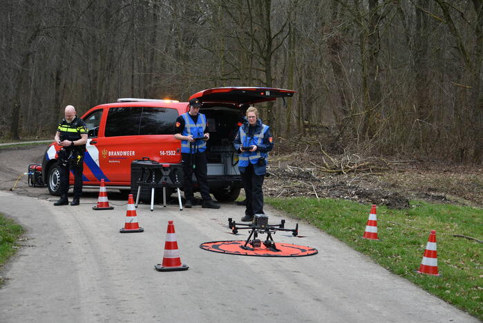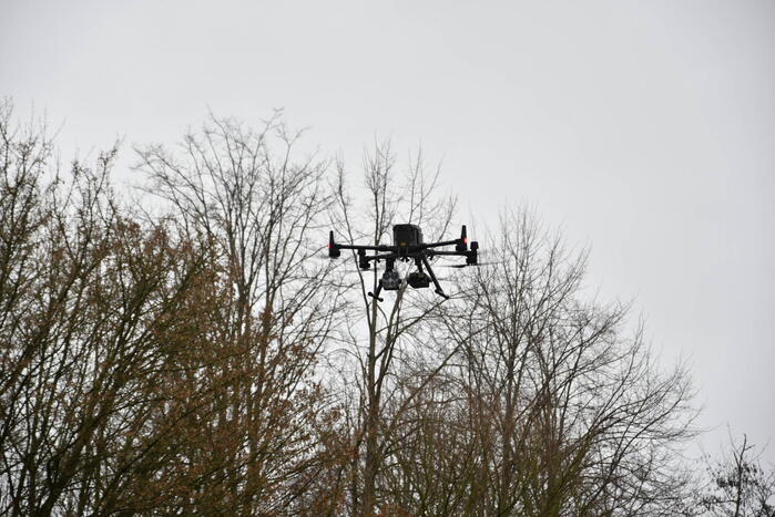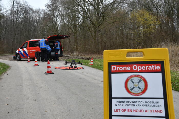 Met behulp van een drone van de brandweer wordt een bosgebied afgezocht naar een sinds gisteren vermiste jongen van 19. Ook een politiehelikopter is ingezet om de Oostvaardersplassen af te zoeken.