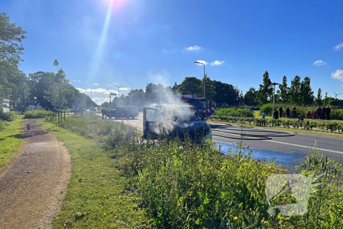 Een bestelbus was in vlammen opgegaan. De brandweer kwam met een blusvoertuig om de brand te doven. De bestelbus brandde volledig uit, waardoor de weg afgesloten moest worden. Een bergingsbedrijf is ingeschakeld om het voertuig af te voeren.