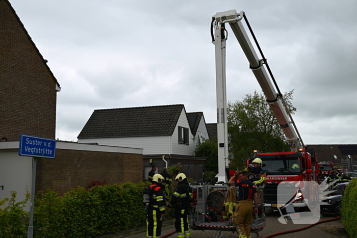 De brand woedde op het dak. De brandweer kwam met meerdere eenheden naar het incident en schaalde op naar het sein 'grote brand'. De brand is overgeslagen naar een naastgelegen woning. De brand was ontstaan door werkzaamheden. Voor zover bekend raakte niemand gewond.