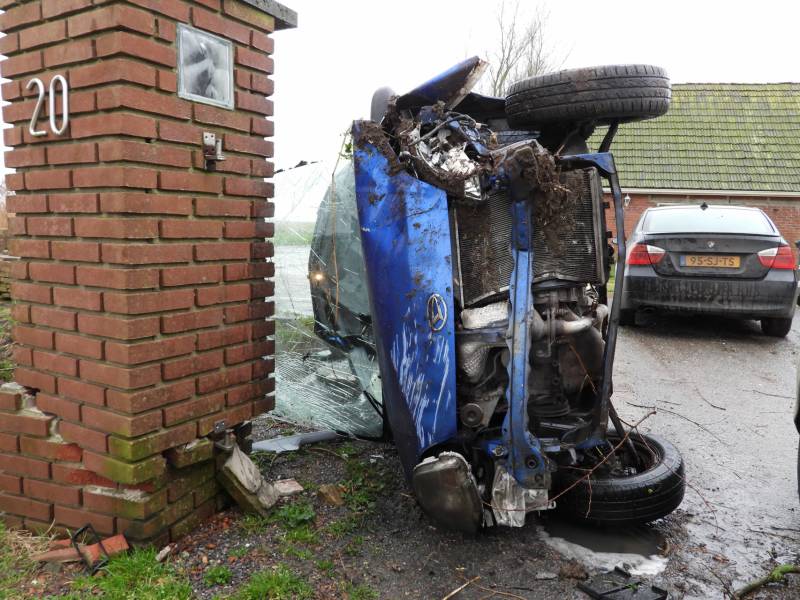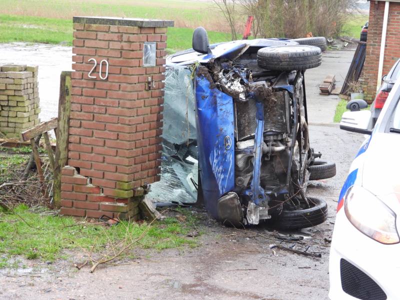 Een begingsbedrijf heeft de auto geborgen. Hoe het ongeval kon gebeuren is een raadsel.