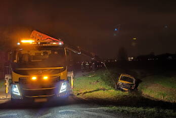 Bezorgbus komt in sloot terrecht