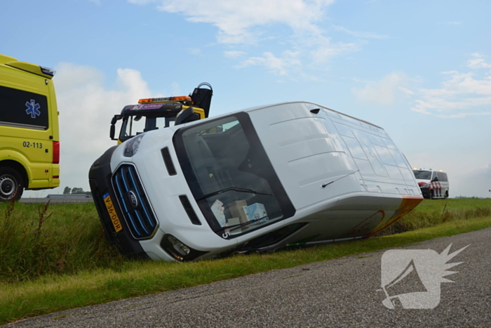 Een pakketbezorger raakte van de weg en belandde in een naastgelegen greppel. De bezorger is in een ambulance nagekeken op eventuele verwondingen. De persoon bleek ongedeerd en hoefde niet naar het ziekenhuis te worden vervoerd.