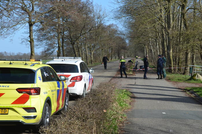 De politieagenten hebben het fietspad afgezet en doen onderzoek.