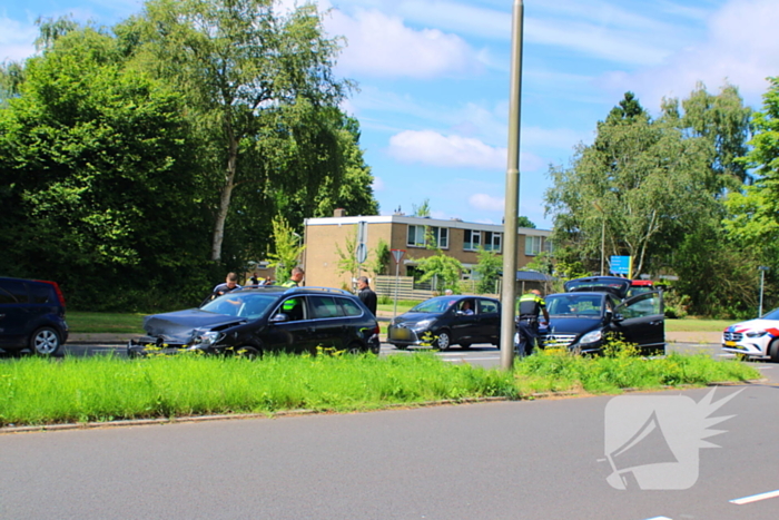 Hier zijn twee personenwagens met elkaar in botsing gekomen. De inzittenden zijn door een ambulancemedewerker gecontroleerd. Voor zover bekend hoefde niemand naar het ziekenhuis. Hoe de aanrijding precies heeft kunnen gebeuren, is nog onbekend. Twee auto's moesten worden geborgen omdat ze zoveel schade hebben opgelopen dat verder rijden niet meer mogelijk was.