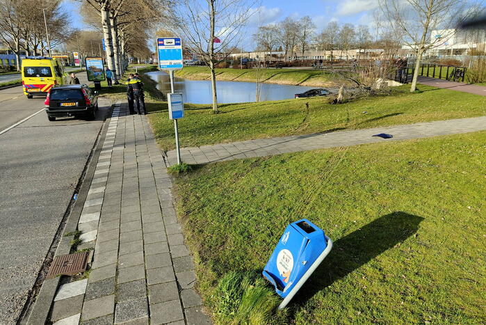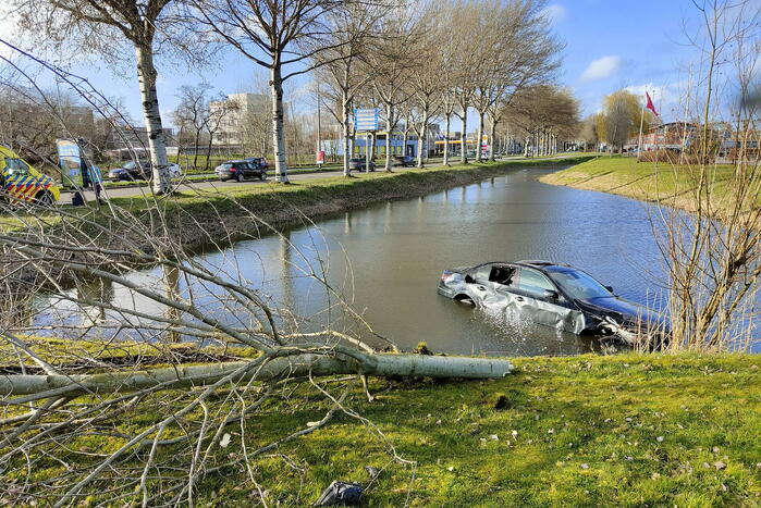 Door nog onbekende oorzaak is een bestuurder uit de bocht gevlogen en te water geraakt. De man raakte eerst nog een prullenbak en een boom die volledig afbrak. Een man raakte gewond en is ter controle vervoerd naar een ziekenhuis.