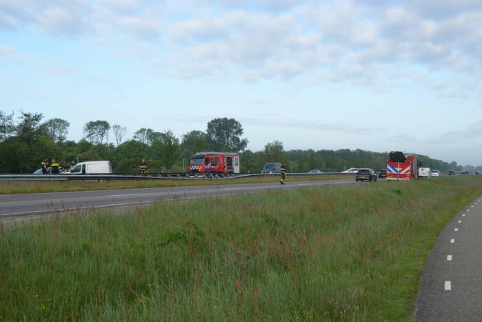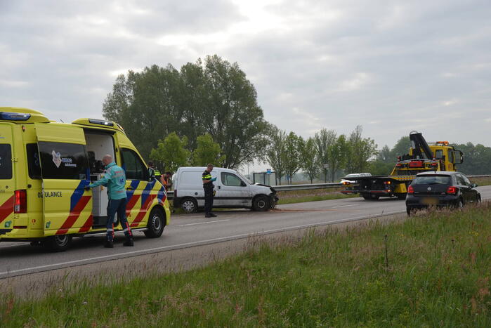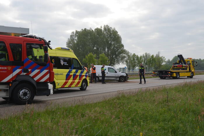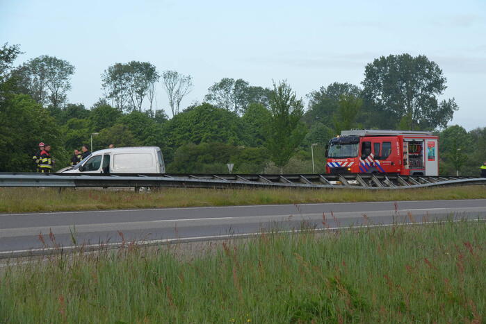Een bestuurder van een bestelbus raakte van de weg en botste tegen de vangrails. Een inzittende werd door een ambulancemedewerker gecontroleerd op verwondingen en werd vervolgens met onbekende verwondingen naar het ziekenhuis vervoerd.