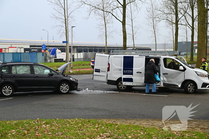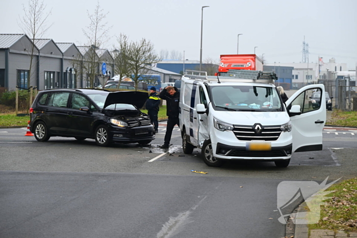 Een personenauto en een bestelbus zijn door onbekende oorzaak met elkaar in botsing gekomen. Eén persoon werd nagekeken door het ambulancepersoneel maar vervoer naar een ziekenhuis bleek niet nodig.