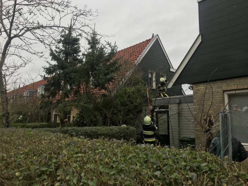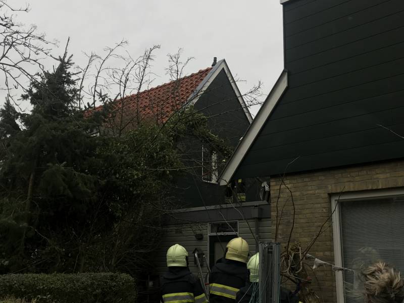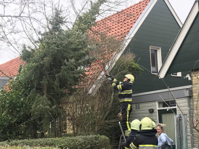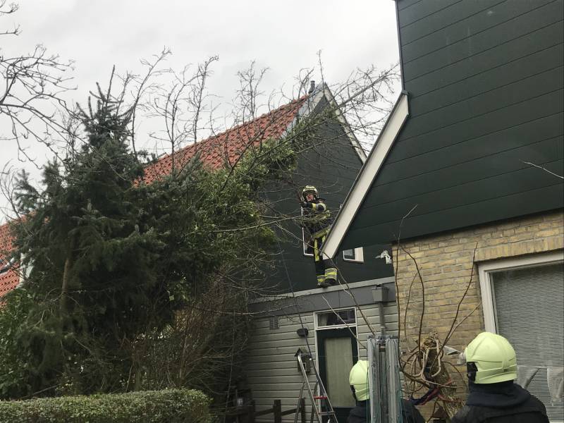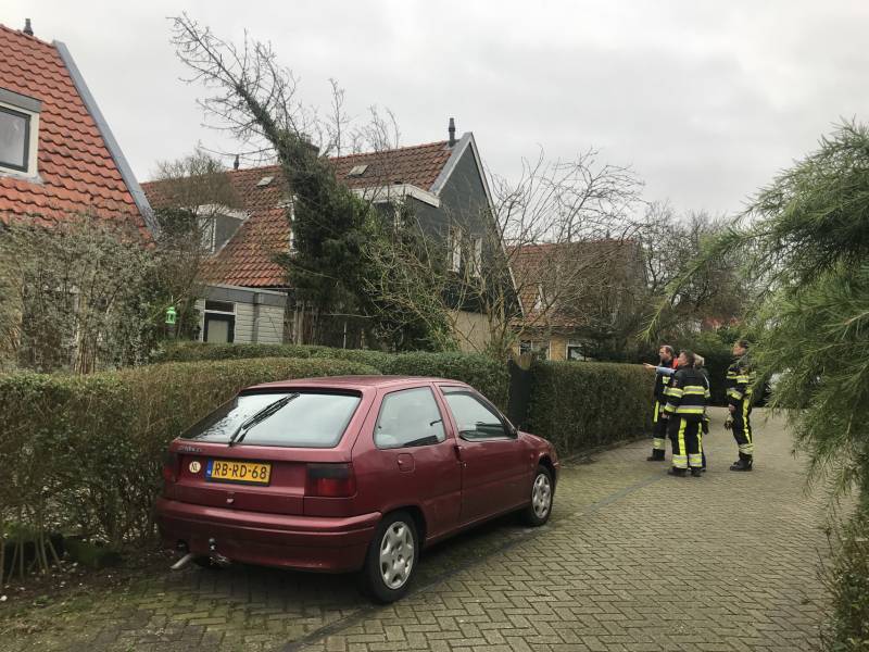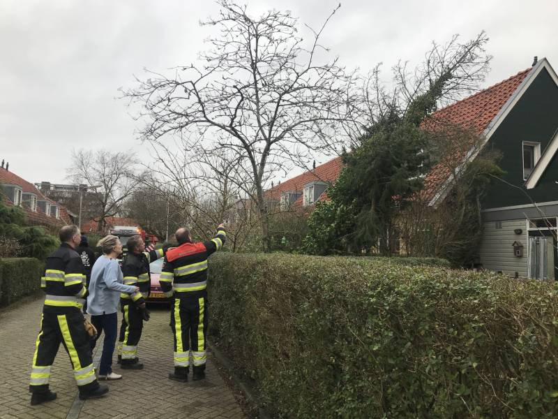 De brandweer gaat de boom omzagen om zo het gevaar op schade te voorkomen.