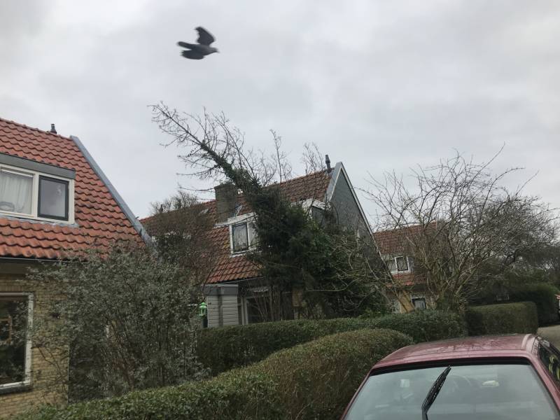 LEEUWARDEN - Zondagmiddag 9 februari rond 13.05 uur drijgt een boom aan de Marssumerstraat in 112 Leeuwarden op een schuur te vallen.