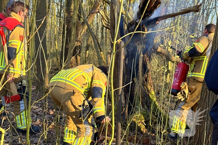 Bij aankomst van de brandweer bleek het te gaan om een kleine smeulbrand in een boom. Brandweerlieden hebben gehakt om de brand te kunnen doven.