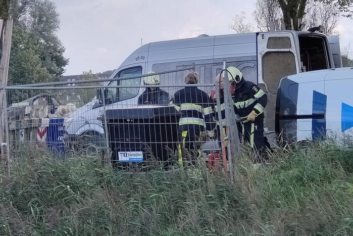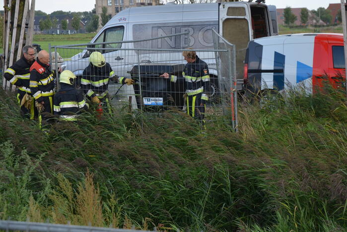 Door onbekende oorzaak had een stroom verdeelkast vlam gevat. De kast staat hier vanwege de nieuwbouw van een brug. De brandweer heeft de brand met een CO2 blusser geblust.