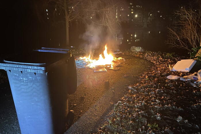 Op locatie stond een vuilcontainer in brand. De brandweer heeft de brand geblust. Ook hebben ze een andere container gecontroleerd, maar deze stond niet in brand.