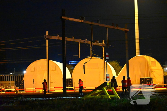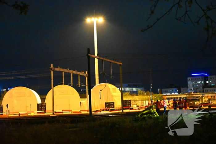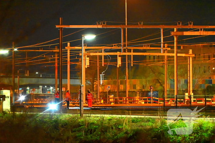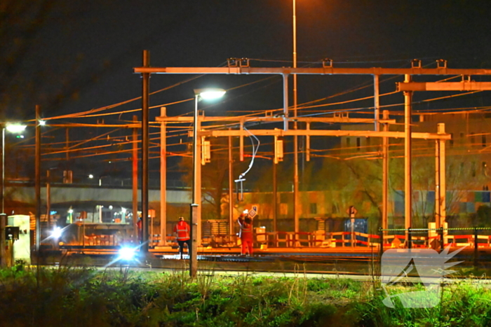 Monteurs van ProRail zijn momenteel bezig met herstelwerkzaamheden. Het is nog niet duidelijk of deze situatie hinder voor het spoorgverkeer zal opleveren.