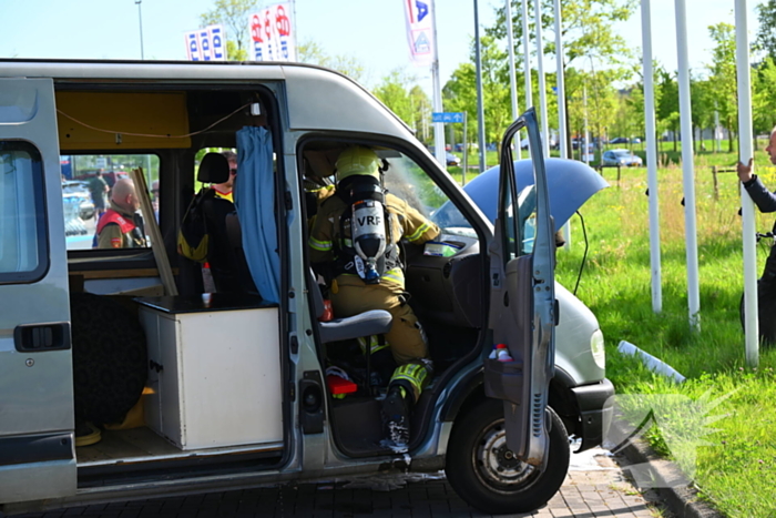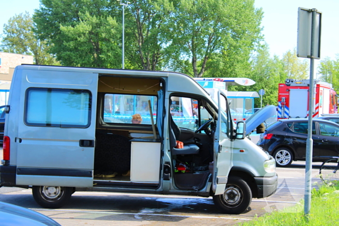 Een camper is in brand gevlogen onder het dashboard. Een DHL-medewerker heeft de eerste bluspogingen ondernomen. De brandweer heeft met blusvoertuigen gereageerd en de brand weten te blussen. Gelukkig zijn er geen gewonden gevallen. Het is nog onduidelijk hoe de brand was ontstaan.