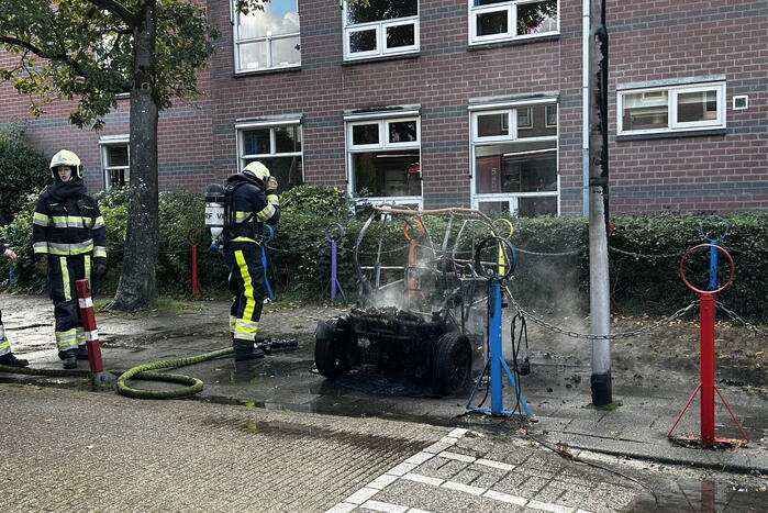 LEEUWARDEN - Maandagmiddag 18 september rond 17.00 uur was brand ontstaan in een elektrisch voertuig aan de Pieter Feddesstraat in 112 Leeuwarden.