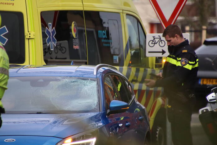 Een fietser is tijden het oversteken op een voorruit van een auto terechtgekomen. De fietser is hierbij gewond geraakt en behandeld aan zijn verwoningen in een ambulance. De fietser hoefde niet mee naar het ziekenhuis.