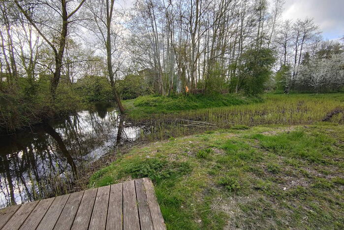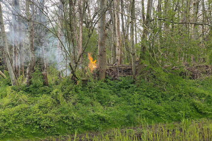 Bij aankomst van de brandweer sloegen flinke vlammen uit een boomwal. Brandweerlieden hebben de brand geblust. Daarbij hebben zij, door middel van een dompelpomp, bluswater uit de naastgelegen sloot gehaald.