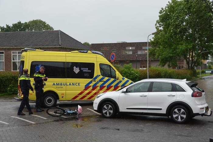 Een jongeman is met zijn fiets aangereden door een auto. Het slachtoffer is gewond geraakt en behandeld in een ambulance en vervolgens per ambulance naar het ziekenhuis overgebracht.