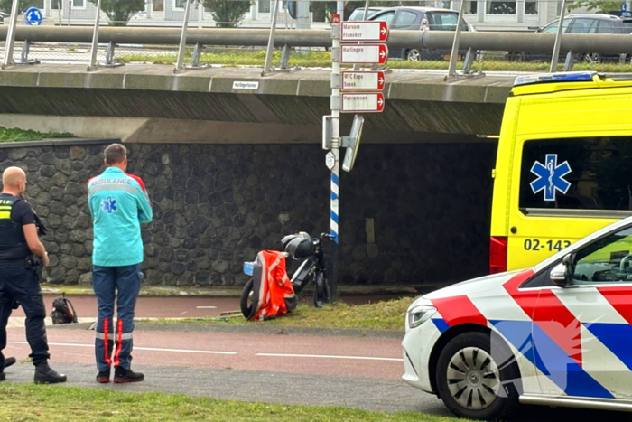 Een brommerrijder en een kind op step waren met elkaar in botsing op het fietspad aan het Europaplein. Ambulancemedewerkers werden ingezet om de betrokkenen na te kijken op eventuele verwoningen. Vervoer naar het ziekenhuis bleek niet nodig.