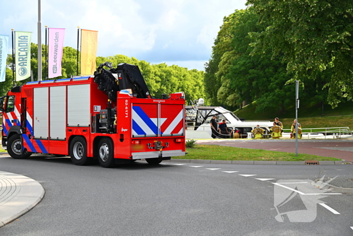Hulpdiensten zijn bezig met het onder controle brengen van een ongeval met een grote huurkruiser nabij de rotonde Harlingersingel. Het vereiste inzet van extra pompen, die werden ingezet om het vaartuig stabiel te houden.