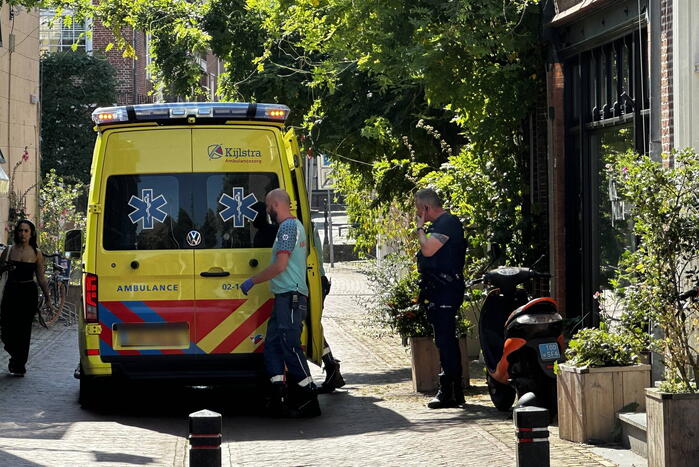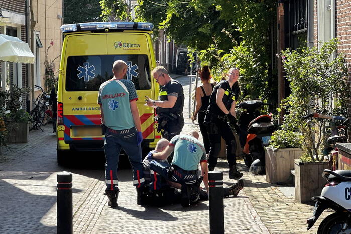 Een oudere man was hard ten val gekomen met een scooter. Het slachtoffer is behandeld in een ambulance maar vervoer bleek niet nodig. De scooter raakt beschadigd bij de val.