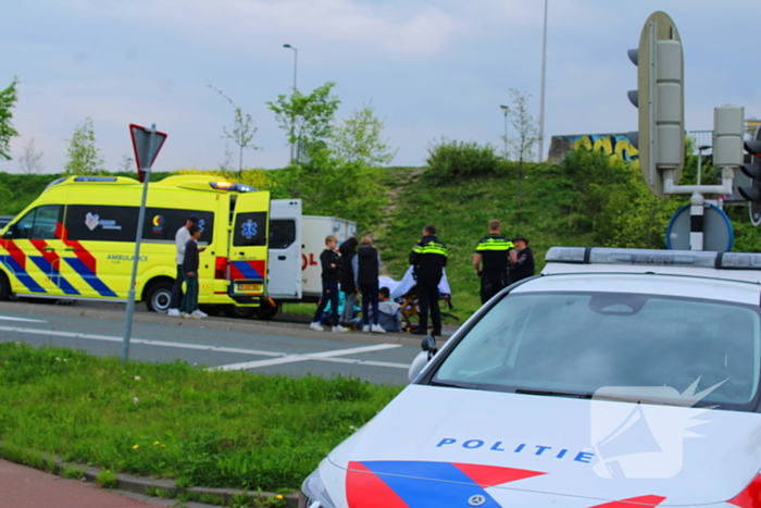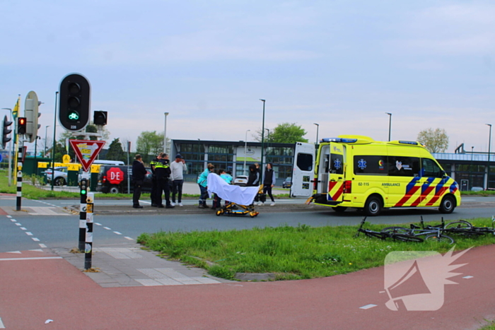 Een fietser en een automobilist zijn met elkaar in botsing gekomen. De fietser werd nagekeken door het ambulancepersoneel. De fietser werd per ambulance naar een ziekenhuis vervoerd.