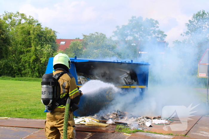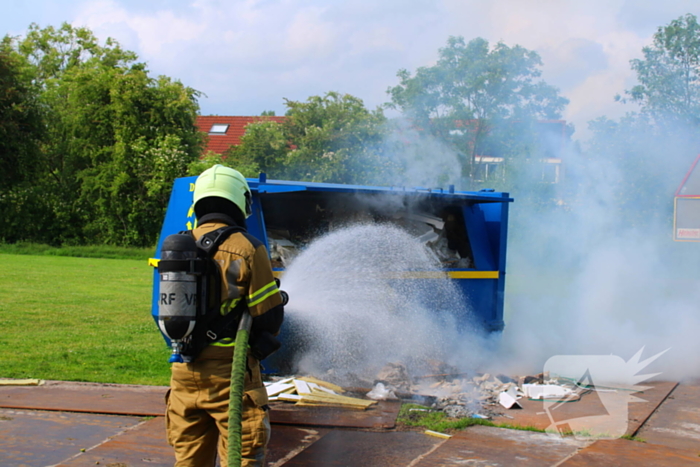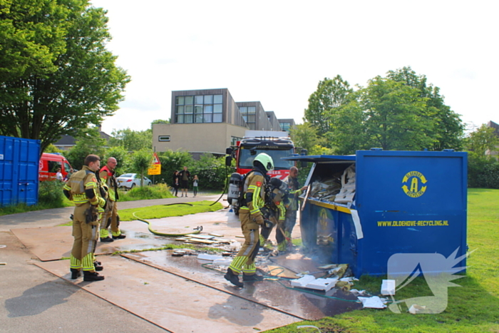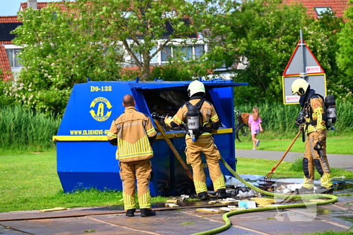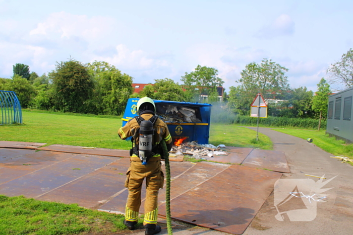 De brandweer is met een blusvoertuig gekomen en slaagde erin de brand in de vuilcontainer te blussen. Het is nog niet duidelijk hoe de brand was ontstaan.