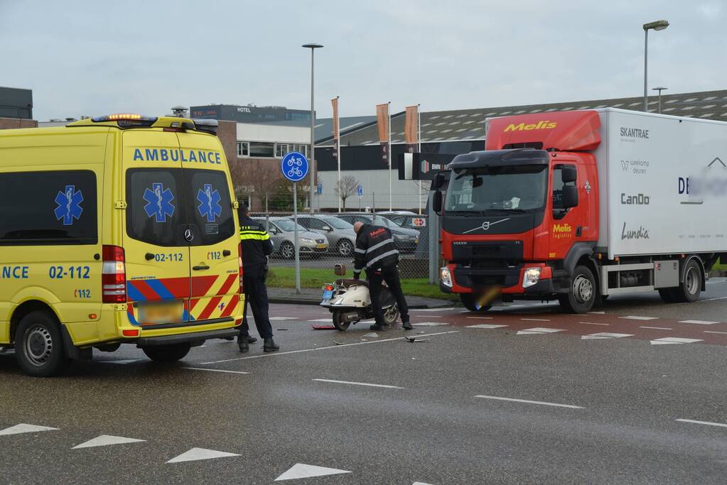 Scooter en vrachtwagen betrokken bij verkeersongeval