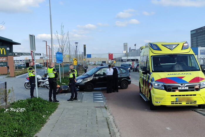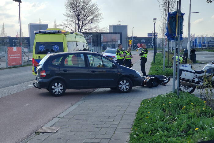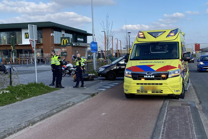 Een afslaande automobilist en een scooterrijder waren met elkaar in botsing gekomen. De bestuurder van de scooter is door het ambulancepersoneel gecontroleerd en behandeld. Het slachtoffer is uiteindelijk voor verdere behandeling vervoerd naar het ziekenhuis.