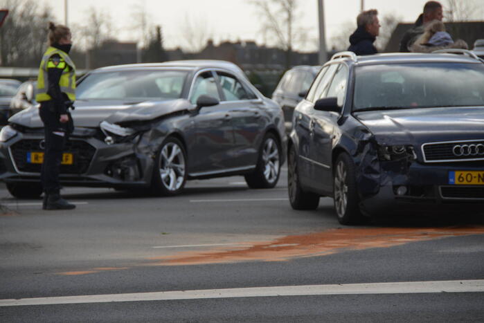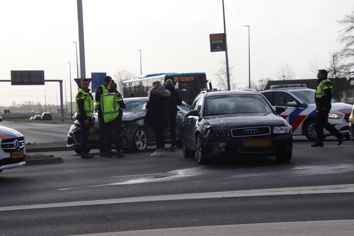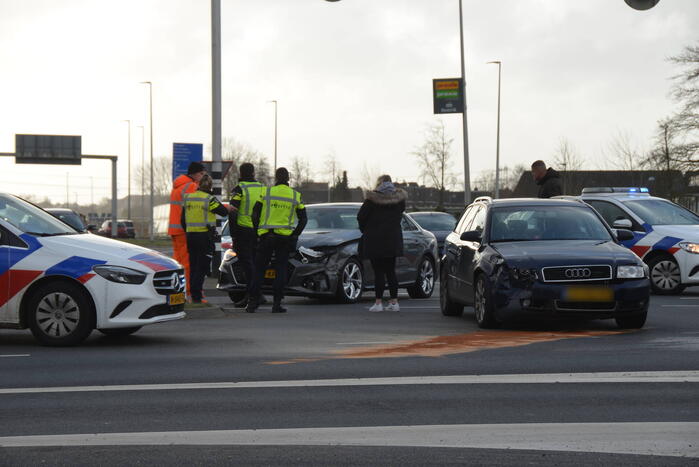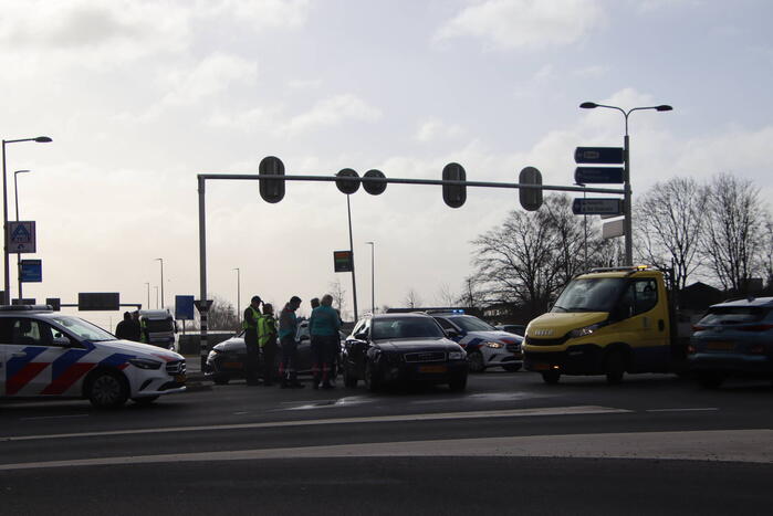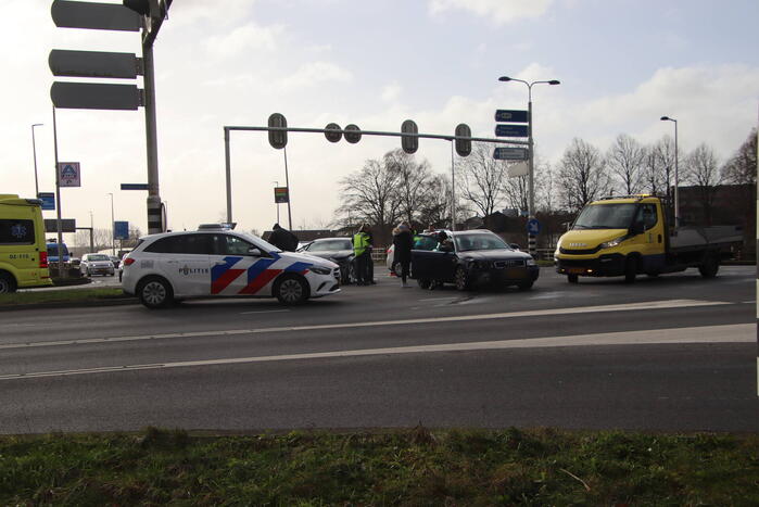 Op het kruispunt zijn twee auto's met elkaar in botsing gekomen. De ambulancedienst is ingezet om de inzittenden te controleren. Het is nog onduidelijk of iemand naar het ziekenhuis moet worden gebracht.