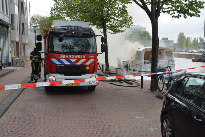 LEEUWARDEN - Woensdagmiddag 17 mei omstreeks 14.00 uur was brand ontstaan op een Duitse pleziervaartuig welke aan de kade ligt van de Westerkade in 112 Leeuwarden.