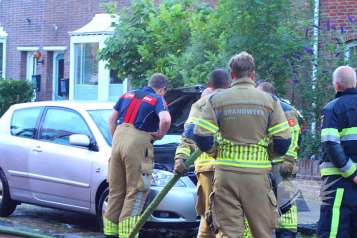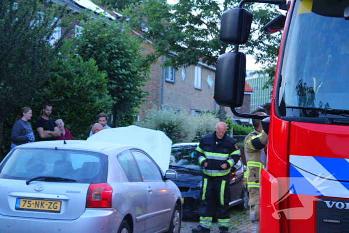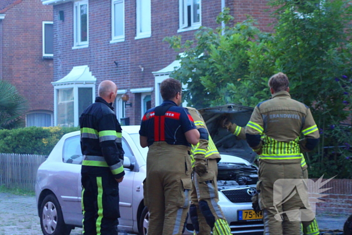 Een voertuig stond in brand bij de motorkap. Een bewoner startte met de blussing waarna de brandweer de smeulende restanten geblust heeft. De auto bleef nog flink roken.
