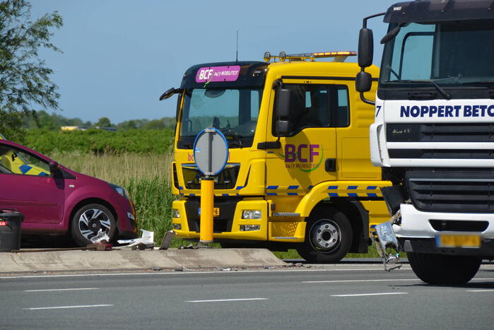 Een vrachtwagen met betonmixer is in botsing gekomen met een personenwagen. De bestuurder van de personenwagen is hierbij gewond geraakt en met een ambulance naar het ziekenhuis gebracht.