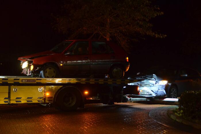 Een personenauto kwam door onbekende oorzaak in botsing met een andere personenauto. Door de schade werden beide voertuigen afgesleept door het bergingsbedrijf. Of iemand gewond is geraakt, is niet bekend.
