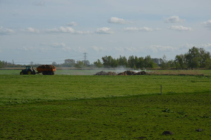 Bij de brand is de volledige schuur afgebrand. Nog smeulend hooi werd weggereden van de boerderij, en in een naastgelegen weiland gelegd.