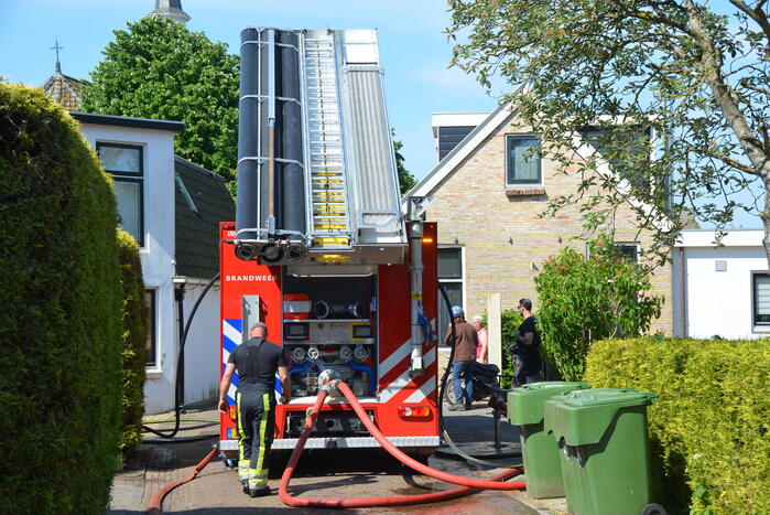 De brandweer schaalde op naar sein 'middelbrand' vanwege de bereikbaarheid van de brand. Brandweerlieden hadden de brand snel onder controle waarna de woning geventileerd is.