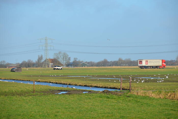 Vrachtwagen met slib weggezakt in bermBekijk ook: