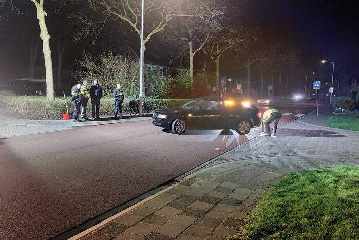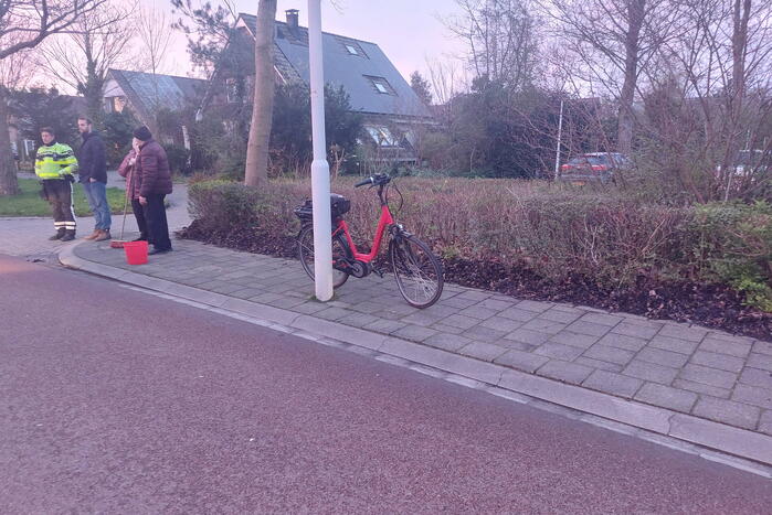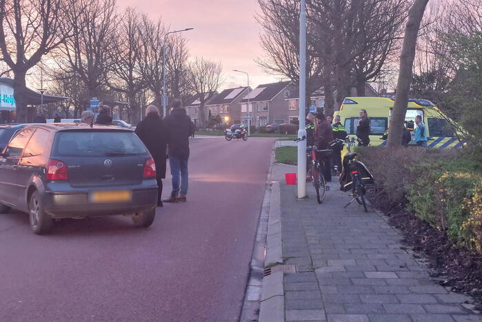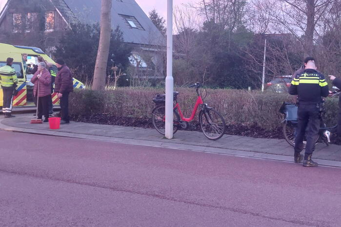 Een fietser was in botsing gekomen met een personenauto. De persoon raakte daarbij gewond en werd na behandeling door het ambulancepersoneel naar het ziekenhuis vervoerd. De auto liep geen noemenswaardige schade op. De fietser echter wel, het voorwiel raakte flink verbogen.